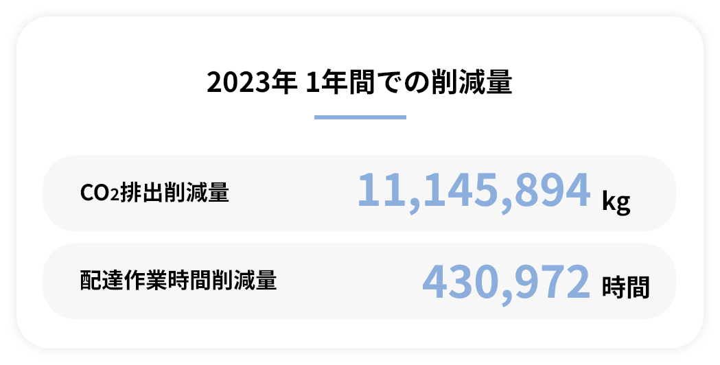 私たちは、業界のリーディングカンパニーとして、再配達により発生するCO2排出量および宅配ドライバーの配達作業時間の削減をめざし、「再配達ゼロ」へ向けて、様々なプロジェクトを推進しています。